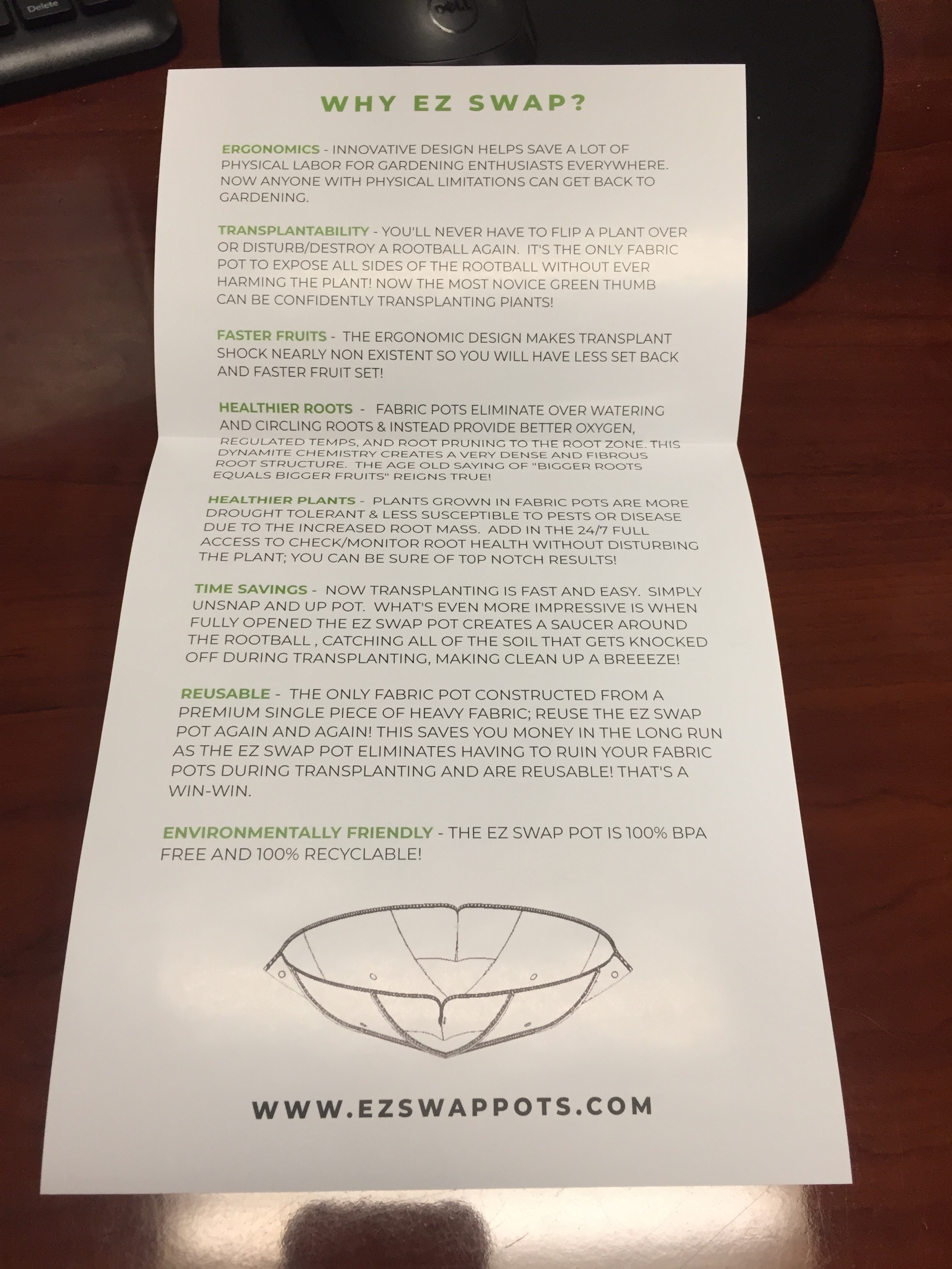 All of our fabric pots are constructed of heavier than standard geotextile and plastic snaps to endure the weight load of any medium going in them. Our ergonomically designed pot will save you a tremendous amount of physical labor, time, and provide faster harvest intervals as our pot minimizes transplant shock!! Best of all they are reusable over and over again, saving you money and the environment.